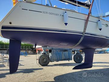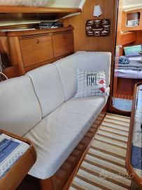 Descrizione Privato vende: Anno 2003. Motore AB VOLVO PENTA MD 2030. Utilizzata poco. Bandiera : Italia Dimensioni Largh.: 3,47m Lung. 10.80 Pescaggio : 1,85 m Dislocamento: 5200 Kg Capacità passeggeri: 8 Cabine: 2 Cuccette: 4 + 2 dinette Bagni: 1 con doccia Capacità acqua: 310 L Motore Volvo Penta 30 HP INTERNI: Eleganti interni in legno di ciliegio e pavimento in tek marino, soffitti e pareti laterali in ecopelle color panna, dinette in velluto blu originali jeanneau. Dotata di 2 cabine doppie, (sempre in bellissimo velluto blu navy), 1 bagno con doccia ( separabile dal lavello dalla porta in vetro) acqua calda, serbatoi dell'acqua a poppa e prua (Tot. 310 LT). Abbassando il tavolino di ottiene altri 2 posti letto nella dinette. Il piano cottura è dotato di fornelli a gas + forno a gas, lavandino con rubinetteria, frigorifero a pozzetto da 140lt. IN DOTAZIONE Ancora Delta 10kg + 50 mt di catena da 8mm; 1 ancora di rispetto 10kg con 3 mt di catena elica Max Prop a 3 pale abbattibili + elica di rispetto a 3 pale fisse Accessori: Capotte di tuga + copritimone+ bimini top passerella poppa acciaio inox - carbottino 3 batterie 70A, boiler, chartplotter INTERPHASE, VHF ICOM M49, Raymarine Wind TRIDATA, Autopilota Raymarine ST 4001 Gennaker triradiale in nylon 85m2 da murare su un bompressino in acciaio inox fatto installare sul musone dell'ancora. Tormentina Randa 27,5m2 Tender, motore fuori bordo, zattera di salvataggio scaduta. INTERVENTI NEL 2025 Cambio filtri motore e girante, sostituzione presa a mare WC. Possibilità di subentro al posto barca in darsena Punta Faro
