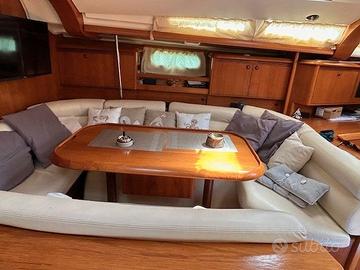 Barca Armatoriale, con motore Yanmar 100 cv, tre cabine, due bagni, uno con wc elettrico, interni nuovi, elica di prua, generatore paguro rigenerato l'anno scorso, frigo rigenerato, manovre correnti nuove, webasto, cartografico raymarine auxiam + ais nuovi, contametri catena nuovo, randa steccata, gennaker, bompresso, tendi patarazzo, teak in coperta, tender con fb, cuscinerie bimini spray e copriranda nuovi, ore moto 2600, Rina 2028, Zattera 8 persone in corso di validità, visibile a Procida
