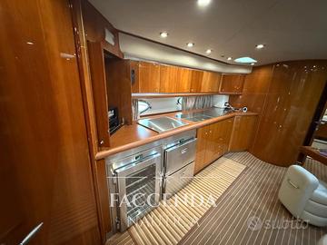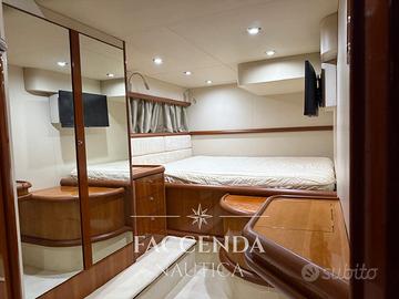 Lunghezza scafo 19,51 metri Larghezza 4,59 metri Anno di Costruzione 2002 Velocità Massima 34 nodi Velocità di Crociera 30 nodi Dislocamento 26500 Kg Pescaggio 1,35 metri Bandiera italiana Revisione Motori regolare Capacità Serbatoi 2950 litri Inox Tipo Carburante Diesel Motori MAN V10 1100 2 x 1100 Trasmissione Linea d'asse Scafo tuga coperta VTR Serbatoi Acqua 1 x 625 litri Inox Dissalatore SI Autoclave si Tensione 12/24 V Generatore si N° Batterie 12 Carica Batterie si Inverter si Sunseeker Predator 61 in ottime condizioni, refittato, multiaccessoriato e costantemente manutenuto. Pronto alla boa per visita e prova in mare. Il Predator 61 è un cruiser sportivo molto richiesto e apprezzato per la versatilità e il divertimento in mare. Linea sportiva e filante in esterno, ha interni curati, eleganti, luminosi per il relax degli ospiti. VERSIONE TRE CABINE ELEGANTEMENTE ARREDATE PER 8 POSTI LETTO 1 cabina armatoriale a prua 1 cabina matrimoniale 1 cabina con 2 letti singoli in piano 2 bagni con doccia Ampio salone luminoso, elegante, con finiture di pregio Cucina completamente accessoriata Frigorifero a doppio cassetto in cucina e in pozzetto Fabbricatore ghiaccio Cantinetta per vini – 20 bottiglie TV 42” in salone e TV 37” in ogni cabina – 2025 Piastra in pozzetto – 2025 Piano cottura a induzione in cucina – 2025 Tavolo pieghevole in teak in pozzetto - 2025 Aria condizionata in tutte le cabine e nel salone L’imbarcazione ha subito una notevole modernizzazione delle parti inerenti l’interno delle cabine tra le quali sostituzione delle zanzariere, tende degli oblò, materassi letti cabine con memory form, faretti lettura cabine, faretti pozzetto. Tutte le batterie 2025 Dissalatore 120 lts/h Autoclave doppia – 2025 Inverter/caricabatterie Victron - 3000W - 2025 Generatore N.12 BATTERIE LITIO 2025 Garage Plancetta elenco strumentazione a richiesta Dati ritenuti corretti, ma non contrattuali. La presente non costituisce, in nessun caso, documento contrattuale