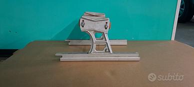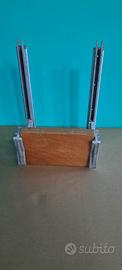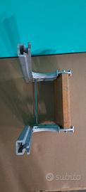In anticorodal anodizzato. Guide trafilate in anticorodal anodizzato. Tavola in faggio verniciato ai poliuretani, regolabile in 3 posizioni. Sistema di sollevamento con blocco a motore alzato. E' un supporto robusto ed elegante.