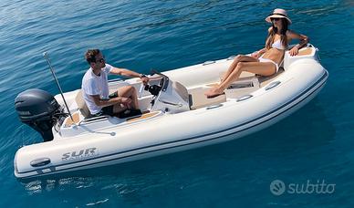 Sur Marine ST 400 Questo tender per maxi-yacht, ultima creazione del cantiere, offre un incredibile spazio a bordo con ingombro esterno limitato. La carena ereditata dai modelli superiori offre un'andatura perfetta e senza esitazioni anche con mare formato. Soluzioni innovative uniche per il comfort, come lo schienale di poppa regolabile in altezza e la consolle con seduta tipo "chaise-longue" per bagni di sole in velocità, sono state studiate con cura, così come gli ampissimi gavoni facilmente accessibili. Lunghezza 4,00 MT Larghezza 1,90 MT Peso 225 KG Diametro tubolari 45cm Portata persone 6 Motorizzazione Max. 50HP MareMoto Style Il centro del gommone All' interno del nostro Schowroom trovi gommoni di varie misure nuovi e usati Per qualsiasi domanda non esitare contattarci ! www.maremotostyle.com