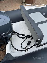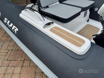 Tender SUR MARINE ST330, colore antracite, motore Yamaha F25, Trim elettrico, Teak sintetico, Strumentazione Yamaha LCD, Flap, luci di cortesia, luce ancora, luci di navigazione. Pochissime ore di navigazione, come nuovo.