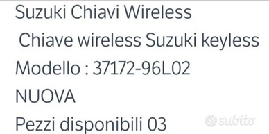 SUZUKI CHIAVE WIRELESS KEYLESS Modello: 37172-96L02 Nuova mai usata Pezzi disponibili 03 25 euro cadauno Se le acquisti tutte e 3 insieme 70 euro
