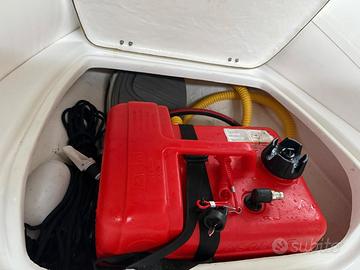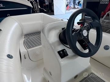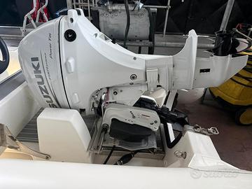 Questo esemplare è proposto in versione luxury, completo di Suzuki DF20A White con accensione elettrica, trim, scatola telecomando, luci di via, luci di cortesia, serbatoio e teak EVA grigio.