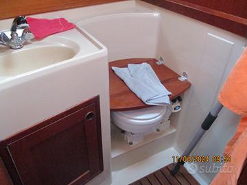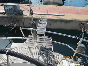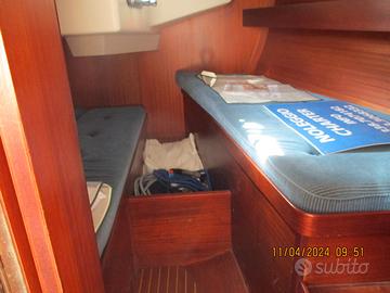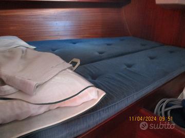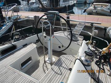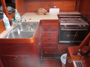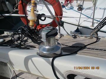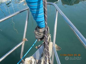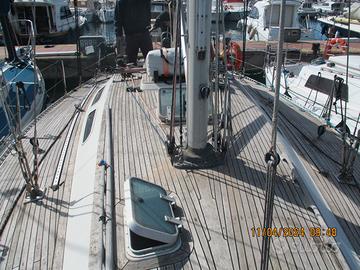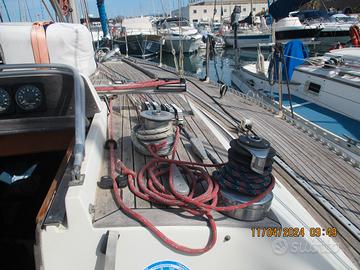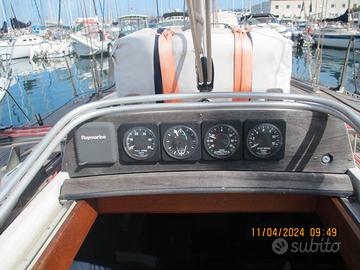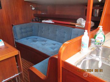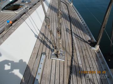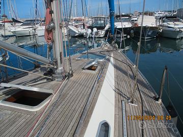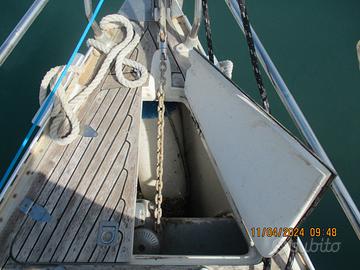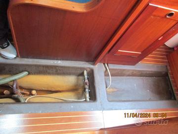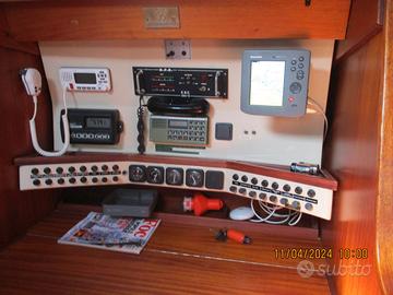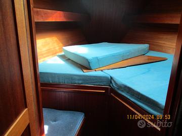 anno 1985, l.f.t. 10,99, disl. 7750 kg, imm. 2,05, motore 1 x 29 volvo s.drive, ore moto 1400, serb. carburante 100 lt., serb. acqua 200 lt.,elica bipala abbattibile, rina scade 2028, due cabine, 1 bagno con wc marino, cucina 3 fuochi, forno, frigo, Vhf, riscaldamento Webasto, Eco, Gps plotter, Autopilota, staz. vento, salpancore elettrico, ancora danforth, zattera 6 persone, interni ottimi.ponte in tek.