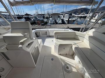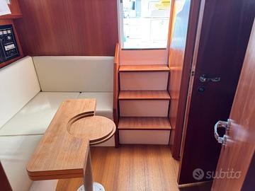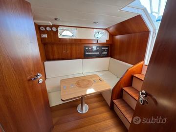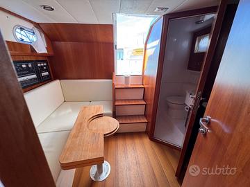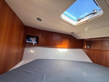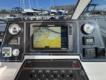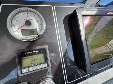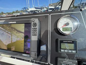 Caratteristiche tecniche: Modello: T 31 EXPRESS Anno di costruzione: 2017 Lunghezza fuori tutta: 10,60 m – NATANTE Lunghezza scafo: 9,69 m Larghezza massima: 3,60 m Peso approssimativo a secco: 7.000 kg Omologazione CE: categoria B Numero di persone trasportabili: 8 Serbatoio carburante: 700 litri Serbatoio acqua: 200 litri Accessori: Scafo colore blu capri e coperta colore bianco Tetto rigido in vetroresina con vano portastrumenti Traliccio in acciaio inox Faretti ad incasso nel tetto Chiusura totale per tetto rigido in trasparente e tela Salpa ancora elettrico 1000 W Musone di prua, ancora tipo Bruce e catena zincata calibrata Cuscino prendisole a prua Frigorifero pozzetto a cassetto inox da 65 litri Elica di prua Trolling valve Impianto acque nere con serbatoio da 70 l, livello e filtro antiodore 2 batterie motori + 2 batterie servizi 2 prese pozzetto 12 V Copri console per strumentazione Vasca del vivo Pompa lavaggio pozzetto acqua salata Doccia pozzetto acqua dolce Strumentazione elettronica: Radio VHF Lowrance Link-5 Display multifunzione Lowrance HDS-12 GEN3 Trasduttore Airmar M260 da interno a bagno d’olio da 1 kW Motori: Casa costruttrice: VOLVO PENTA Modello: D-6 370 EVC-E2 da 370 HP Potenza: 2 x 370 HP Anno di costruzione: 2017 Ore di moto: 350 circa Il prezzo esposto è indicativo ,la trattativa è riservata . Disponibili a visite programmate e a eventuale assistenza per finanziamento .