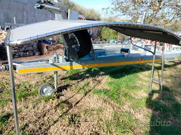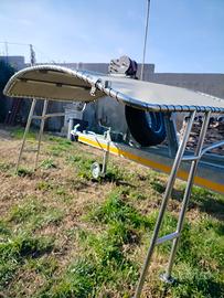 T-top roll-bar in acciaio inox con tubo da 30 mm. Struttura molto robusta completa di telo misure copertura cappottina 230x 128 cm. Altezza 100 cm ( si fissa sulla murata della barca e la larghezza del fissaggio è 225-230 cm circa). Contattatemi telefonicamente per maggiori informazioni 3382848026 Daniele