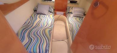 Splendido Targa 52 con 3 cabine e 2 bagni, full optional e in OTTIME CONDIIZONI ESTETICHE, VENDITA PER PASSAGGIO AD ALTRA CATEGORIA. Pochissimi lavori da eseguire per la prossima stagione. Lunghezza scafo 15,73 metri (max: 16,00 metri) Larghezza 4,25 metri Anno di Costruzione 2005 Velocità Massima 32 nodi - Velocità di Crociera 26 nodi Motori Volvo Penta D12 2 x 715 Ore di moto 1070 Generatore Onan 7 Kw Descrizione Interni Cucina esterna, Dinette esterna, Salone interno, Cucina interna, 3 cabine (1 Matrimoniale + 2 Singole), 2 Toilette. Descrizione Armamenti Allarme motore, Angolo barra, Autoclave, Autogonfiabile, Bussola, Caricabatterie, Comando motori elettronico, Contamiglia, Doccia esterna, Ecoscandaglio, Elica di prua - bow thruster, Faro orientabile, Flap elettrici, GPS, Impianto antincendio, Lavandino nel Pozzetto, Luci subacquee, Piattaforma, Pilota automatico, Plotter con antenna GPS, Pompa di sentina automatica, Pompa di sentina elettrica, Pompa di sentina manuale, Pozzetto Teak, Presa 220V banchina, Raddrizzatore, Radio VHF, Rollbar, Salpa Ancore Elettrico, Scaletta da bagno, Tavolo pozzetto, Tavolo Salone Abbattibile Descrizione Strumentazione Altoparlanti, Aria condizionata, Boiler, 2 Cucina (interna ed esterna), Cuscineria completa, Frigorifero esterno, Frigorifero interno, Impianto acque nere, Impianto TV, Indicatore del serbatoio del carburante, Indicatore del Serbatoio dell’Acqua, Inverter, Microonde, Piastra in vetroceramica, Prese interne 220v, Riscaldamento, Serbatoio Acque Nere, Stereo, TV, 2 WC marino elettrico