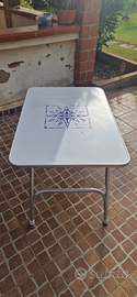 Tavolo pieghevole rettangolare 88x60 Tavolo pieghevole di alta qualità Forma piano rettangolare Struttura tubo alluminio anodizzato Diametro 25 mm Ripiano in VERZALIT bianco con decoro Spessore 16 mm Altezza 61 Come nuovo.