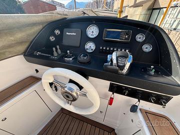 Cuscineria completa, elica di prua, frigorifero, impianto condizionamento, elettronica raymarine, pozzetto in teak massello, telo di copertura totale.