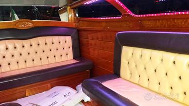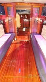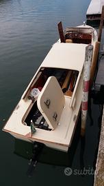 Vendesi imbarcazione in vtr modello taxi sita in laguna di Venezia costruzione cantiere Chia colore crema chiaro Gelcoat dalla pietà lunghezza 9.10 Motorizzata con Ww 265cv 6V con 12.600 ore di moto, accoppiato a piede bravo three con eliche in acciaio.