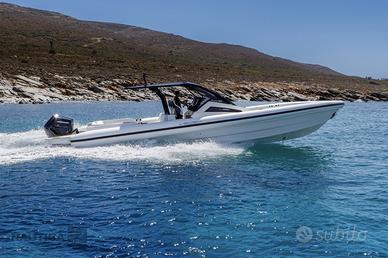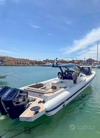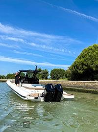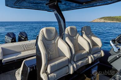 DATI PRINCIPALI Cantiere: Technohull Modello: Alpha 40 Anno Costruzione: 2025 Lunghezza: 12,1 m Condizione: nuovo Tipologia: Hypalon Neoprene Codice: 816237 MOTORI Potenza: 2 x 400 Hp Modello: Mercury Verado V 10 Trasmissione: Fuoribordo Anno: 2025 DATI TECNICI Lunghezza fuori tutto: 12,1 m Larghezza: 3,6 m Immersione: 0,58 m Persone trasportabili: 12 Velocità massima: 75 Kn Velocità di crociera: 45 Kn Serbatoio carburante: 800 l Serbatoio acqua: 130 l Categoria di navigazione: B - D'altura Impianto elettrico: 12V, 220V STRUMENTAZIONE ELETTRONICA DI NAVIGAZIONE Bussola, Computer di bordo, DSC vhf (VHF Raymarine Ray 53), GPS, Plotter con antenna GPS (GPS Raymarine Axiom Pro 12'' with map), Radio VHF, Sonar. ALLESTIMENTO TECNICO E DI COPERTA Allarme fumo/gas, Ancora, Autoclave, 4 Batterie, Caricabatterie, Cavo corrente di banchina, Doccia esterna, Luci di cortesia, Pompa di sentina automatica, Ponte in teak, Presa 220V banchina, Salpa Ancore Elettrico, Tavolo, Tromba. DOTAZIONI DOMESTICHE DI BORDO Prese interne 12v, Prese interne 220v, WC marino elettrico. INTRATTENIMENTO Radio AM/FM, Stereo. CUCINA ED ELETTRODOMESTICI Cucina, Frigorifero esterno. TAPPEZZERIE Bimini (T-Top Side protection tents), Copripozzetto, Cuscineria completa. NOTE ACCESSORI Console operated battery master switches Wireless phone charger Remote battery master switches Remote for anchor windlas Engines digital monitor Vessel View 703 (Mercury) or Bilge pump controls with visual pump running warnings