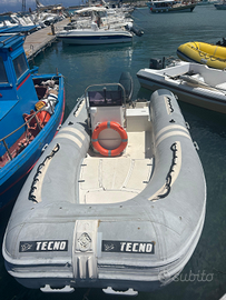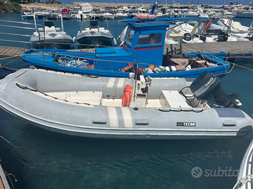 Gommone tecno MT. 5.10, motore Yamaha top 700. Sia motore che gommone sono in buone condizioni, motore con girante appena sostituita, il gommone presenta il tessuto in buone condizioni e lo stesso la vetroresina, uno dei quattro comparti in cui è divisa la parte gommata presenta una leggera perdita.
