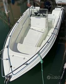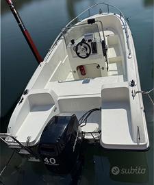 Vendo Tecnofiber Almar autosvuotante omologato CE con murate molto alte, ampi spazi a bordo e ampi gavoni. Misure 5x1.90m Motore Mercury 40 4 tempi anno 2001 con doppie chiavi. Impianto elettrico perfettamente funzionante, Ecoscandaglio, pompa di sentina automatica, luci a led, luci nel gavone di poppa, ancora, faro a led, tromba, scaletta, console abbattibile, portacanne, bottazzo nuovo, tendalino e ampie spiaggette di poppa.