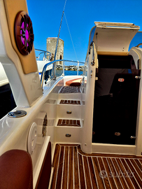 Rivestimento in Teak nuovo su tutta la barca con calafataggio bianco.