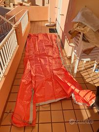 Telo arancione, impermeabile, in ottime condizioni, mai usato, senza strappi ne fori, con cordatura e relativi ganci grigi. Telo copri gommone, copri imbarcazione. Misure: 228x450cm Disponibili anche di altre dimensioni.