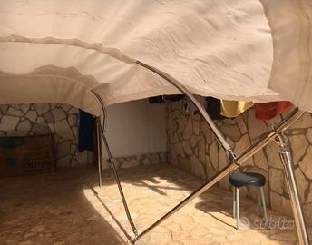 costruito artigianalmente acciaio inox tubi da 30 mm. lunghezza aperto 4,5 mt larghezza 2 mt altezza da terra come foto 1, 20 mt . supporti fissaggio robusti tel. 3666625388 1500€