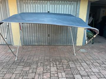 Tendalino a 4 archi in buono stato . Rimosso da sciallino 25 per sostituzione con tendalino originale . Misure : larghezza 2,15 , lunghezza 2,40 , altezza 1,54. Ho anche accessori ricambio per agganci . Vendo con paleria inox di sostegno.