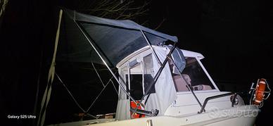 Vendo t?endalino 3 archi completamente in acciaio il tutto veramente perfetto il telo sembra sciupato perche fatto foto di sera ma è perfettissimo .. lunghezza 2 metri era montato su barca di 2.30 di larghezza .non trattabile .