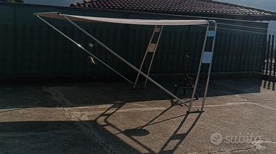 Tendalino estensibile completo di struttura inox 316L,costruita con tubi da 22/25 mm, con ponticelli per fissare la cordina e tenerla in tensione,tessuto Oxford 600D,blu navy,beige,grigio,completa di attacchi concavi per essere fissata al roll bar,sbloccaggio tramite pulsante a molla,copertura in estensione di MT.2,05,per la misura in larghezza fornire la distanza centro tubo del roll bar,pagamento tramite PayPal oppure bonifico,spedizione entro 4 giorni dal pagamento,prezzo 290 spedizione compresa,specificare se per modello dritto oppure sagomato.