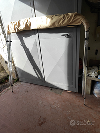 Vendo tendalino in tessuto di colore beige con struttura in alluminio completo di fodero copertura e accessori di ancoraggio. Il tendalino e stato usato un solo anno dopo smontato perché la barca l'ho venduta