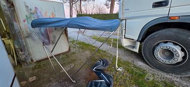 Vendo tendalino a 3 archi completamente in acciaio inox telo nuovo messo 1 anno fa perfetto .. no perditempo 2 metri era montato su barca si 2.30 mt di larghezza