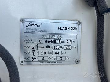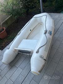 Tender con chiglia rigida in vetroresina, con ottime doti di navigabilità. Peso 37 kg. Presenta lievi perdite d’aria. Usato regolarmente ogni stagione, e rimessato in capannone il periodo invernale.