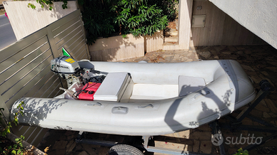 Vendo gommoncino metri 3, con chiglia rigida e motore Honda 5cv 4 tempi. Il tender è in condizioni eccellenti così come il motore ed il carrello da alaggio. I tubolari sono in hypalon( eventualmente assolutamente riparabili) e non in PVC! Cuscineria, pompa di sentina, porta batteria e serbatoio carburante da 12 LT Il gommone si trova a Donnalucata.