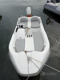 luxury Tender del cantiere Sur Marine, pari al nuovo, praticamente una moto d'acqua comodo per 4 persone senza la manutenzione che richiede un motore entrobordo -3.60 con motore 30 cv Honda 4 tempi ( 40 ore di moto) trim elettronico quadro completo di tutti gli strumenti velocissimo 30 nodi no patente , due prendisole , rifiniture di lusso , bitte a scomparsa ampi gavoni, telo originale copri scafo e un'altro copri motore,puro divertimento e facile da gestire, regalo rulli pneumatici per tirarlo in spiaggia, cuscineria perfetta, non necessita di patente, immediato realizzo, carrello incluso ex omologato , no perditempo, no altre foto