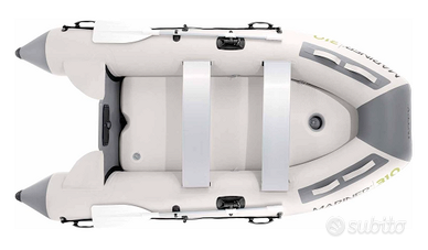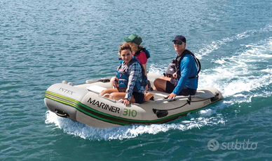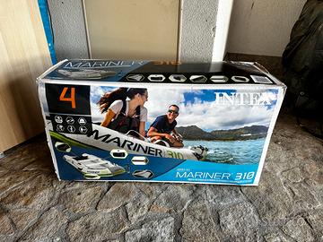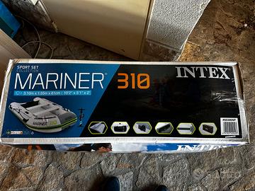Marca Intex, modello Mariner 310, con capacità massima di quattro persone (400 kg) e dimensioni 310x155x41 cm, è realizzato in PVC a triplo strato SuperTough, protezione sui lati e fondo antiroccia rinforzata, pavimento gonfiabile con Tecnologia Drop-Stitch, due sedili in alluminio leggero e robusto, con fibbia staccabile. La confezione include una coppia di remi in alluminio da 137 cm; una pompa con manometro; una pratica borsa per il trasporto del gommone. È nuovo, mai stato usato, ancora nella sua confezione originale. Il peso completo degli accessori é di 38 Kg. La struttura a quattro camere d'aria offre una migliore stabilità mentre le cuciture termosaldate perfettamente garantiscono un canotto durevole e resistente anche all'uso intensivo e in acqua salata. Perfetto come tender, o per la pesca o svago sottocosta. Motorizzabile con un piccolo fuoribordo elettrico o a combustione. Prezzo non trattabile, non spedisco, solo scambio a mano.