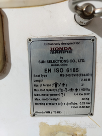 Tender HONDA T24 mt 240 PAIOLO GONFIABILE NON PERDE TIENE PRESSIONE OK VALVOLE. TELO SACCA PER TRASPORTO PANCA.