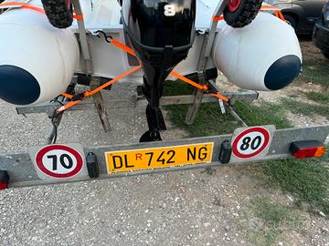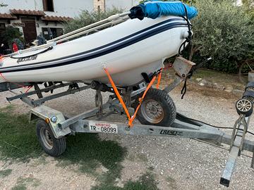 Causa mancanza di tempo vendo gommone quicksilver con chiglia in alluminio di 3,20 metri ( non paiolato ma tutto lo scafo e' in alluminio).motore mercury 8 cv con avviamento elettrico. Tutto accessoriato con ruote di alaggio in alluminio,tendalino,sacca con dotazioni per tre persone,panca in alluminio e porta canne. Tutto acquistato con fattura settembre 2024 e provato solo 2 ore. Solo il motore costa 2800 euro.vendo completo di carrello omologato.no perditempo