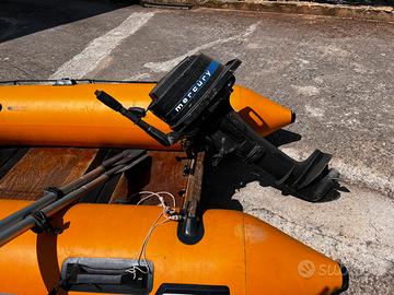 Tender gommone usato , a tripla camera, con piglio nato e paramezzale in compensato marino. Completo di remi e motore mercury cv 4,5. Ideale per trasporto su camper o macchina, per lago o mare. Vendo per inutilizzo.