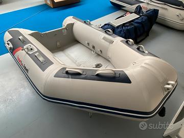 Gommone Tender Honwave T24 IE3 / T27IE3 nuovi smontabile con paiolato ad alta pressione a V profonda dotazioni: coppia di remi panchetta vtr sacca trasporto kit riparazione gonfiatore Caratteristiche tecniche: Lunghezza Totale (cm) 240 / 267 Baglio Massimo (cm) 154 Lunghezza Interna (cm) 148 /177 Baglio Interno (cm) 67 Diametro Tubolare (cm) 42.5 Dimensioni Imballo (cm) 112 x 69 x 34/ 112 x 65 x 38 Peso Netto (kg) 33 / 34 Potenza Massima (hp)6/ 8 Numero Passeggeri (Adulti/Bambini) 3 - 3/1 Peso a Pieno Carico (kg) 664 Compartimenti 3 + Pagliolo (2) Pagliolo Carena a V gonfiabile Categoria C DISPONIBILI ANCHE LE ALTRE MISURE IN GAMMA : T32 T38