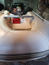 Vendo per inutilizzo bel gommoncino m 2,50 con ghiglia in vetroresina scafo a v. Ruote di alaggio movibili gommone comprato e mai messo in acqua, con motore Honda 5 cv quattro tempi del 2006.sempre tagliando con serbatoio originale honda.il tutto e visibile a Lusciano (ce)