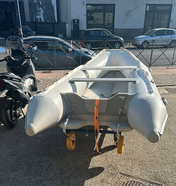 Tender pieghevole chiglia gonfiabile Selva T 380 VIB Anno 2023 pari al nuovo non utilizzato per la stagione 2025. corredato di ruote di alaggio e seconda panca stabilizzatrice. é provvisto di flap a poppa indispensabili per piccoli gommoni. E' possibile acquistarlo con il motore hidea 20 cav. avviamento elettrico batteria a litio incorporata. Per informazioni telefono 349 7857910 - 0823 842246 lunghezza (Lmax) cm 376 Larghezza (Bmax) cm 170 Ø Tubolare cm 44 Superficie calpestabile m2 1.91
