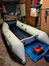 gommone yamaha 340 ,valvole sostituite e rinforzate nessuna problematica e pronto all'uso, piu motore 2 tempi jonson 6 cv con il suo libretto e anche lui pronto all'uso e compreso di serbatoio, più remi , panca, paiolato in alluminio, ruote di allagio per trasportarlo senza sforzi, ciambella di salvataggio omologata cime e ancora a ombrello nuovi di zecca, più libretto di uso e manutenzione del gommone più pompa elettrica collegabile alla batteria dell'auto e una manuale (in 10 minuti lo gonfiate) e per ultimo sacca per trasportarlo