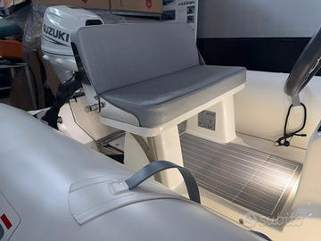 Questo esemplare è proposto in versione luxury, completo di Suzuki DF20A White con accensione elettrica, trim, scatola telecomando, luci di via, luci di cortesia, serbatoio e teak EVA grigio.