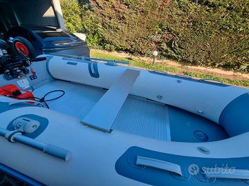 Causa passaggio a categoria superiore, vendo gommone pieghevole Zodiac cadet alu 3,50, con chiglia gonfiabile e pagliolato in alluminio. Lo stesso è dotato dei borsoni per il trasporto, scaletta di risalita post bagno, ruote di alaggio ribaltabili e smontabili, gonfiatore manuale, remi e panchetta. E’ montato un motore Suzuki …20 cv di colore nero che consuma veramente poco. Il tutto viene fornito con un carrello Ellebi con portata di 600 Kg L’insieme gommone, motore e accessori è trasportabile tranquillamente anche nel baule della macchina abbattendo i sedili posteriori. Il gommone, e il motore, sono del maggio 2024 e hanno meno di 20 ore di lavoro in acqua dolce Il carrello è del 2025 e ha percorso meno di 100 Km, (una sola uscita) Il tutto è sempre stato rimessato al coperto Si chiedono 4.000 € per l’intero pacchetto Per info tel 3203130999 e chiedere di Alberto