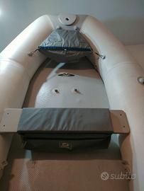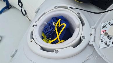 Tender Zodiac modello Cadet Fastroller 360, 3,60 mt. E' perfetto per chi cerca un gommone facile da stivare. Grazie al fondo gonfiabile ad alta pressione H2P, rigido come un fondo tradizionale, il Cadet Fastroller è molto più leggero e performante. La speciale carena profonda Acti-V, anch'essa gonfiabile insieme al fondo, gli conferisce una tenuta di rotta franca precisa ed unica per un tender. Ottimamente equipaggiato: tessuto resistente Strongan Duotex, panchetta amovibile, scalmi con dispositivo "safe-clic", autovuotante a comando interno, remi ecc. Si ripone per intero in un'unica sacca. Dimensioni fuori tutto 360 x 174 cm, Diametro tubolari 45 cm, Potenza massima autorizzata 15 hp, Peso totale 44 kg. Includo equipaggiamento completo con dotazione entro le 3 miglia ( forse i razzi di segnalazione sono scaduti ) con aggiunta optionals originali zodiac quali sacca sottopanca che diventa una borsa e sacca di prua ( c.a. 200?) , salvagente anulare e ruote posteriori ribaltabili per un facile alaggio. Usato poco e tenuto benissimo e sempre gonfio per non stressare i tessuti. Vendo per inutilizzo. FOTO REALI. Da nuovo costa più di 2100? più le ruote più gli accessori, ecc. Massima serietà. VERO AFFARE.