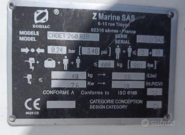 Tender Zodiac CADET 260 RIB. Motore Honda 4.4kw 27-28kg. Zona provincia di Venezia.