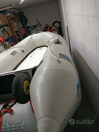 Tender con chiglia vetroresina ,ruote alagio,rifatto tutto l'incollaggio perché datato ma tenuto bene ,con remi ,ancora ,e pompa a pedale