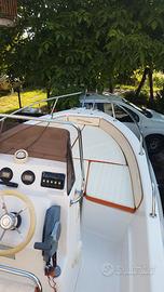 Barca in ottime condizioni tappezzeria originale come nuova, motore yamaha 40/60cv 4t sempre regolarmente tagliandato, tendalino tre archi acciaio inox 2 reggicanne acciaio 6 giubbotti salvataggio 2 ancore serbatoio25lt+ 40lt doppia batteria con selettore, faro di fonda bussola ed ecoscandaglio Garmin 550c, 5 parabordi catena e cordame vario. carrello mta650 targato vendibile separatamente al prezzo di 500 euro. Barca da vedere, non necessità di alcun intervento pronta per il mare, vendo causa INUTILIZZO,ferma da 3 anni, barca e motore 9500, necessità solo sostituzione filtro separazione acqua, da concordare eventuale tagliando e lucidatura eseguiti dopo aver depositato una caparra concordata al momento.