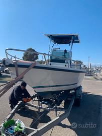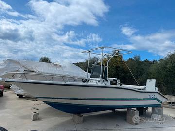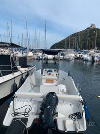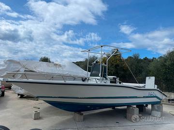 motorizzato 40 hp Evinrude E-Tec +/- 200 ore di moto . T-top Impianto elettrico ok Pompa dell’acqua nuova , sentina ok , cuscineria in buonissime condizioni , motore tagliandato, pronta all’uso. Batteria ok. telo copri barca originale.