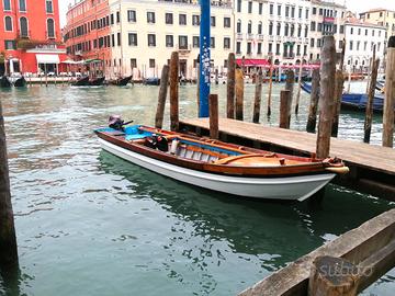 Barca in legno topa tipica Veneziana costruita dal cantiere Tramontin introvabile. Munita di motore tagliandato Yamaha 4t Cv 9.9/20 con Accensione elettrica del 2021. Larghezza media 150cm Appena restaurata e fatta antivegetiva. Visibile a Venezia no perditempo. Prezzo non trattabile