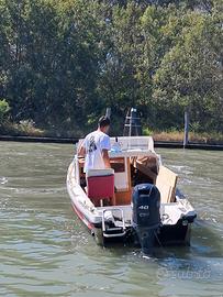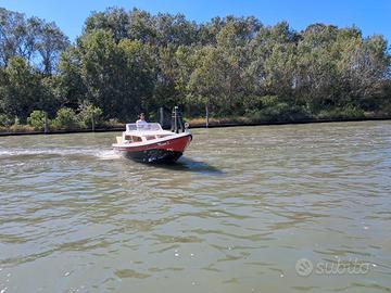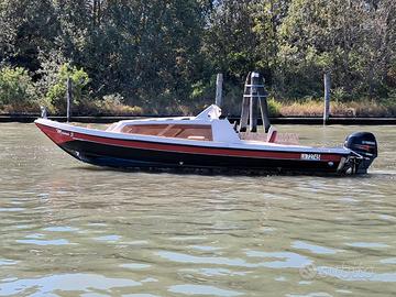 Con cabina in compensato marino, interni in lustrofino, 2 panche per 3 persone (6 posti). Nuovo impianto di illuminazione interno ed esterno alla barca. Motorizzazione 40/70 cv Yamaha anno 2022 ore 230 sempre tagliandata officina autorizzata Yamaha di Murano. Ridipinta esterna e interna completamente gennaio 2025. Tiemo nuovo del 2025 della ditta Ceccon. Serbatoio benzina 40 lt. Strumento di serie Yamaha TACH 1 e GPS. Faro a prua e 2 faretti a poppa, scaletta esterna. Ristrutturata da cantiere Mestrino nel gennaio 2025. Tappezzeria interna e esterna nuova della ditta Ceccon 2025.