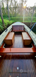 Giugno 2023, Motore meno di 100 ore tagliandato, paioli in compensato Marino di Iroko, fornita di 2 panche in Iroko, una panca a prora e traverso in legno di mogano, pompa sentina, quadro comandi full optional, luci interne LED scafo interno, prese ricarica USB, serbatoio interno con tappo chiave ed originale nuovo ( mai usato ), tiemo con archetti originale in ottimo stato e tiemo raso per l'estate. Sempre tenuta in cantiere e messa a terra per l'inverno.