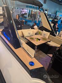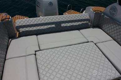 TIGER MANARA MARINE GAMMA TOPLINE , QUALITÀ AL PRIMO POSTO !!! OFFERTA FIERA CIVITAVECCHIA TOPLINE 29 PREZZO DI LISTINO BASE DA EURO 71.900 + IVA - " PREZZO FIERA BASE DA EURO 54.900+ IVA " SENZA MOTORE INOLTRE SUL GOMMONE DEMO FIERA SARÀ APPLICATO UNO SCONTO IMPORTANTE PER GLI OPTIONAL . Il TOPLINE 29 rappresenta il perfetto equilibrio tra design, comfort e qualità costruttiva, un gommone pensato per chi desidera distinguersi e vivere il mare con stile. Un modello destinato sicuramente a non passare inosservato. Il TOPLINE 29 (9,00 m x 3,10 m), un gommone progettato per offrire eleganza, comfort e funzionalità, con spazi generosi e soluzioni pensate per vivere il mare in totale relax. Il TOPLINE 29 si distingue per la sua linea moderna ed accattivante, capace di unire stile e praticità. A bordo troviamo ampi prendisole sia a prua che a poppa, ideali per godersi il sole e i momenti di relax durante la navigazione o all’ancora. La consolle centrale, spaziosa ed ergonomica, offre al suo interno un comodo vano con WC elettrico e doccia (optional), una soluzione che aumenta il comfort durante le uscite giornaliere o le permanenze più lunghe in mare. La zona di poppa è studiata per garantire massima convivialità grazie a una comoda dinette con ampio tavolo, che abbassandosi si trasforma rapidamente in un grande prendisole. Lo schienale ribaltabile verso poppa consente inoltre di ampliare ulteriormente la superficie relax, rendendo gli spazi ancora più versatili. Tra le dotazioni troviamo anche il vano salpancora elettrico a scomparsa, soluzione pratica ed elegante che contribuisce a mantenere la coperta ordinata e funzionale. A completare il design troviamo l’elegante rollbar, elemento distintivo che valorizza la linea sportiva del gommone e ne esalta il carattere moderno. ritiriamo sacs pirelli ranieri sessa selva Honda tohatsu bellingardo zodiac capelli quicksilver bwa joker jolly nuova jolly lomac panamera spx marco evolution battello jeanneau salpa