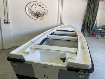 Viene venduta compresa di impianto elettrico base con luci di via, luci interne, pompa sentina e pannello interruttori, bottazzo, bitte, maniglioni tienti bene e tiemo dritto.