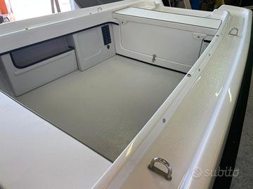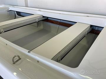 Optional installabili: pulsantiera touch, luci subacquee, luci sentina e gavone prua, pompa sentina con galleggiante automatico, impianto stereo con Bluetooth, tappezzeria, scaletta di risalita, tendalino, tiemo ad archi, serbatoio fisso benzina, impianto per doccetta estraibile, panche supplementari.